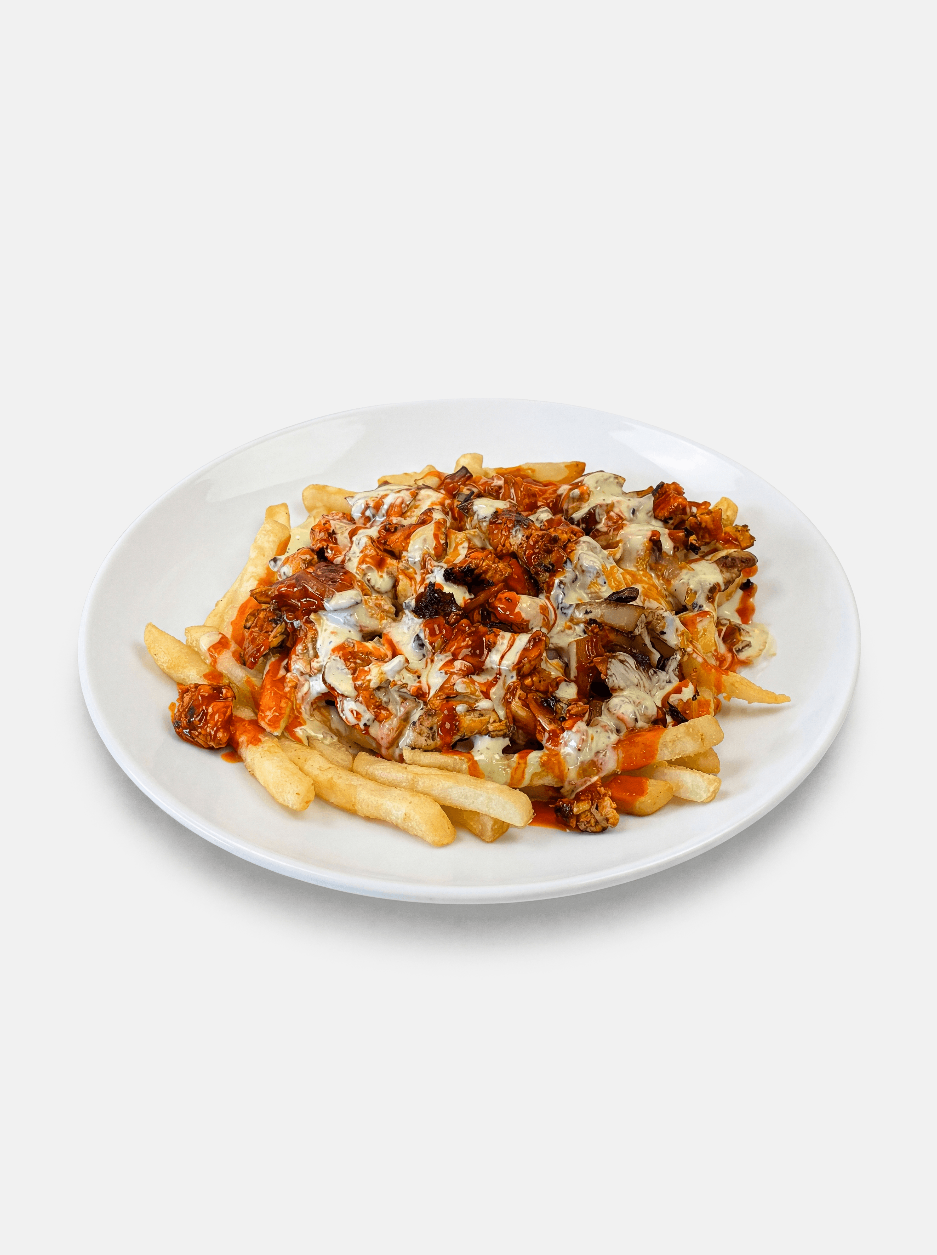 Grilled chicken mixed with grilled onions topped with buffalo sauce, GG sauce, and Ranch